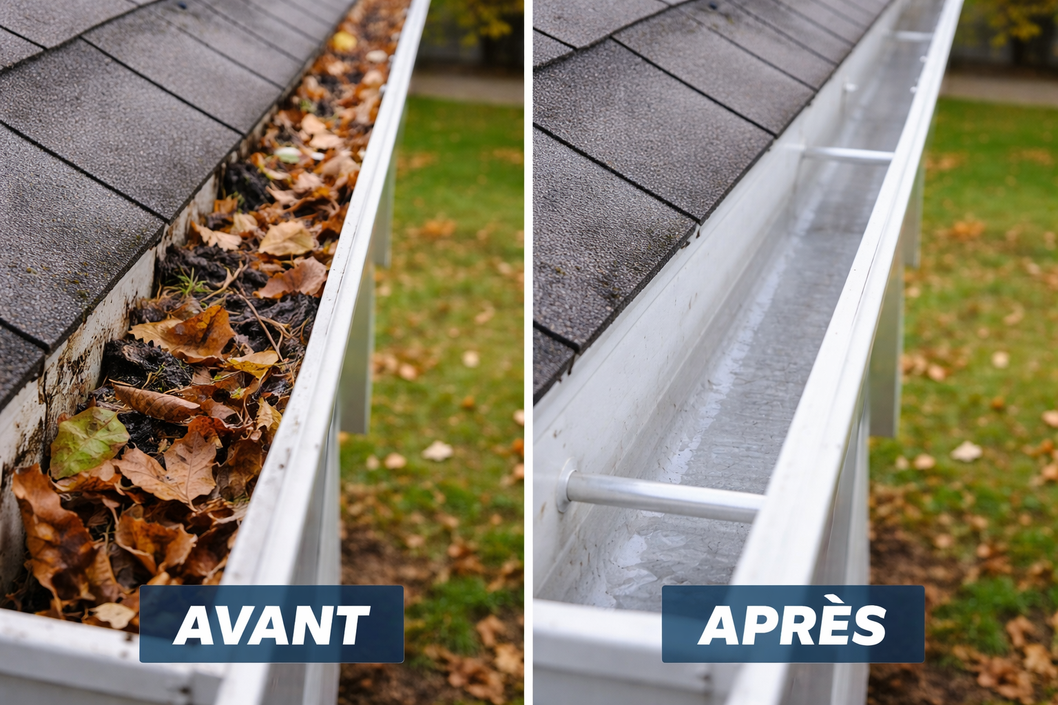 Retrait des feuilles et débris pour assurer un bon écoulement de l’eau.